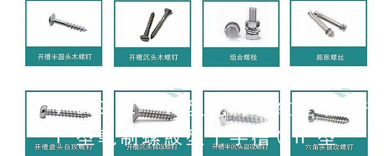1、Flat:平頭 (鎖入后,頂部與工作件齊平)2、Oval:色拉頭、O頭、半沉頭 3、Round:圓頭 4、Pan:圓扁頭 5、Truss:大圓扁頭 6、Hex:六角頭 A-5:Finish Code/外觀處理。公制自攻螺絲 :于品名后方直接標(biāo)示 Tapp 六角花形等;內(nèi)扳擰:一字槽、十字槽H型、十字槽Z型、十字槽F型、四方槽、復(fù)合槽、內(nèi)花鍵、內(nèi)六角花形、內(nèi)三角、內(nèi)六角、內(nèi)12角、離合器槽、六葉片型槽、高扭矩十字槽等。3、螺紋種類螺紋種類繁多,有自攻螺紋(